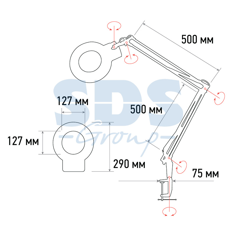 3. Удобный пантографический механизм, состоящий из звеньев. Обеспечит хорошую устойчивость и точную фиксацию лупы в пространстве в необходимом положении.