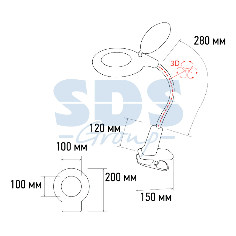 4. Удобный механизм регулировки наклона линзы обеспечит хорошую устойчивость и точную фиксацию лупы в пространстве в необходимом положении, а прищепка позволит мгновенно установить или деинсталлировать устройство.