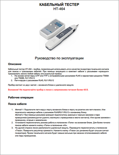 Прибор НТ-464 предназначен для тестирования линий связи построенных на основе витопарных кабелей, а также патч-кордов.