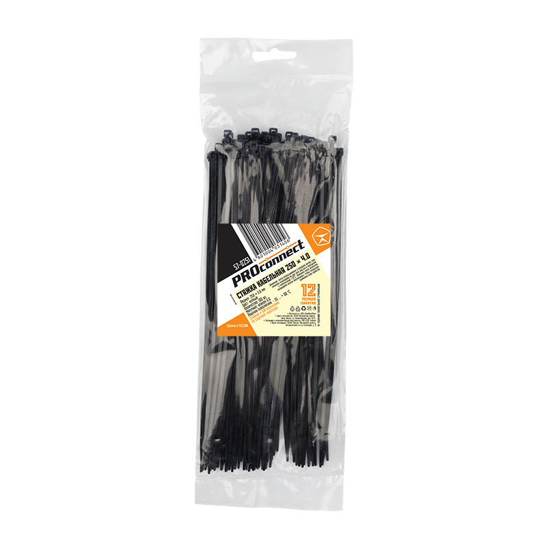 Хомут-стяжка кабельная нейлоновая PROconnect 250 x3,6 мм, черная, упаковка 100 шт. |