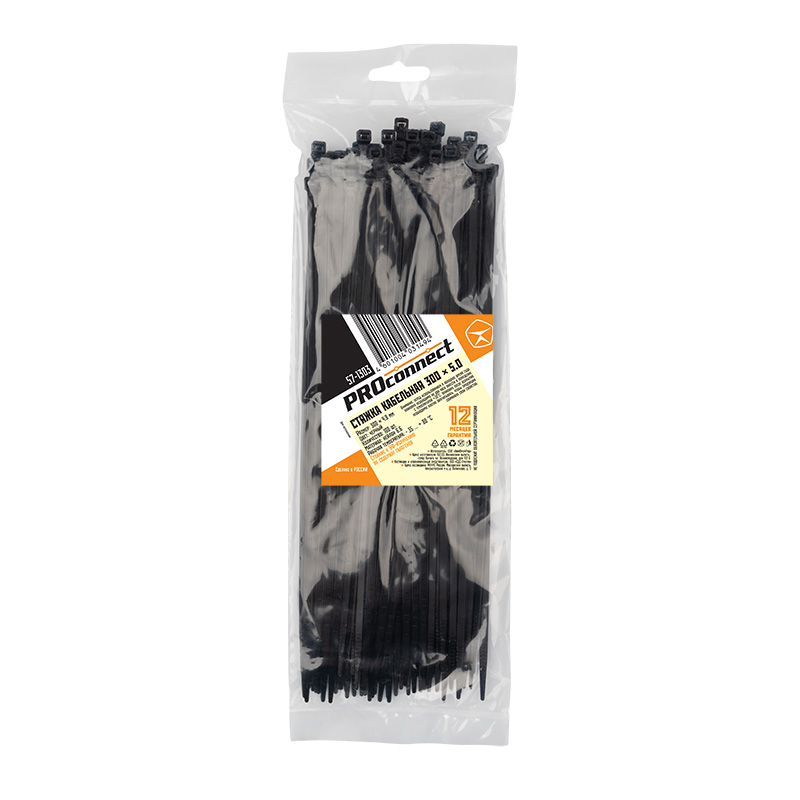 Хомут-стяжка кабельная нейлоновая PROconnect 300 x4,8 мм, черная, упаковка 100 шт.