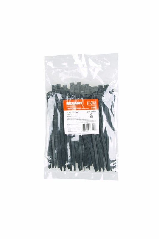 Хомут-стяжкa нейлоновая усиленная с двойным горизонтальным замком REXANT 180x9,0 мм, черная, упаковка 100 шт.