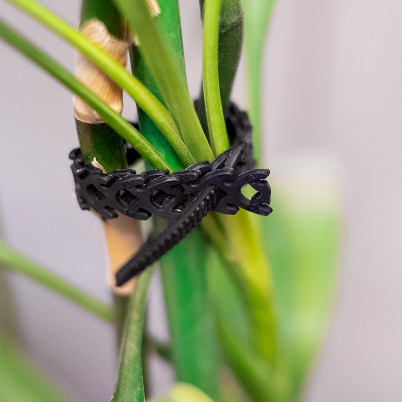 Длина и универсальное строение хомута позволяет закреплять предметы разными способами: плотно к опоре, рядом с опорой на определенном растоянии, на выбранном расстоянии между двумя опорами, либо зафиксировать несколько предметов в ряд. Также необходимо отметить экономичность использования данной стяжки: из однго хомута можно сделать до 3-5 бандажей.