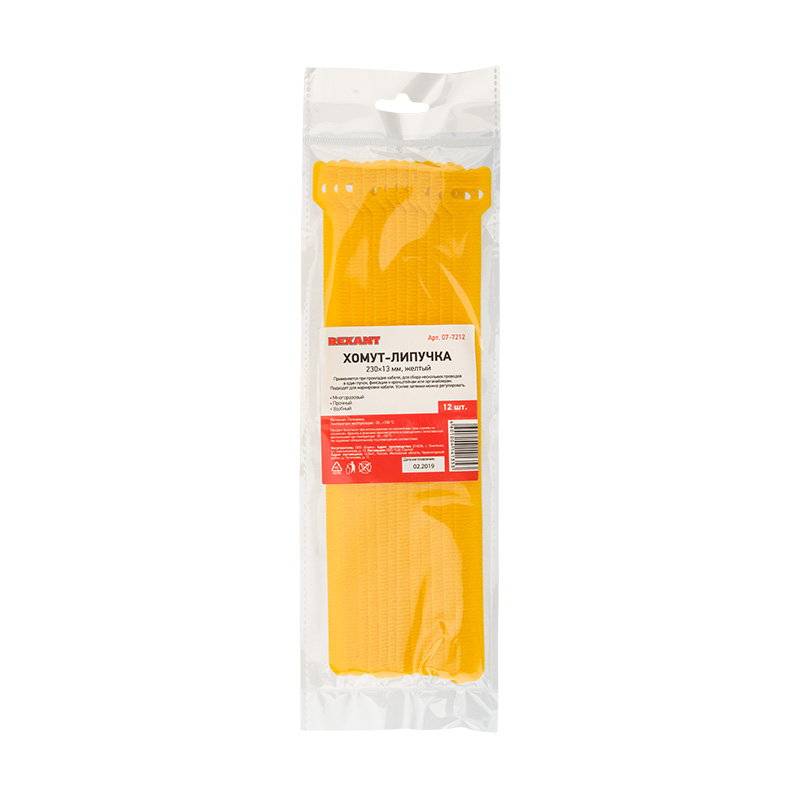 Хомут–липучка многоразовый 230х13 мм, желтый (упак. 12 шт.) REXANT |
