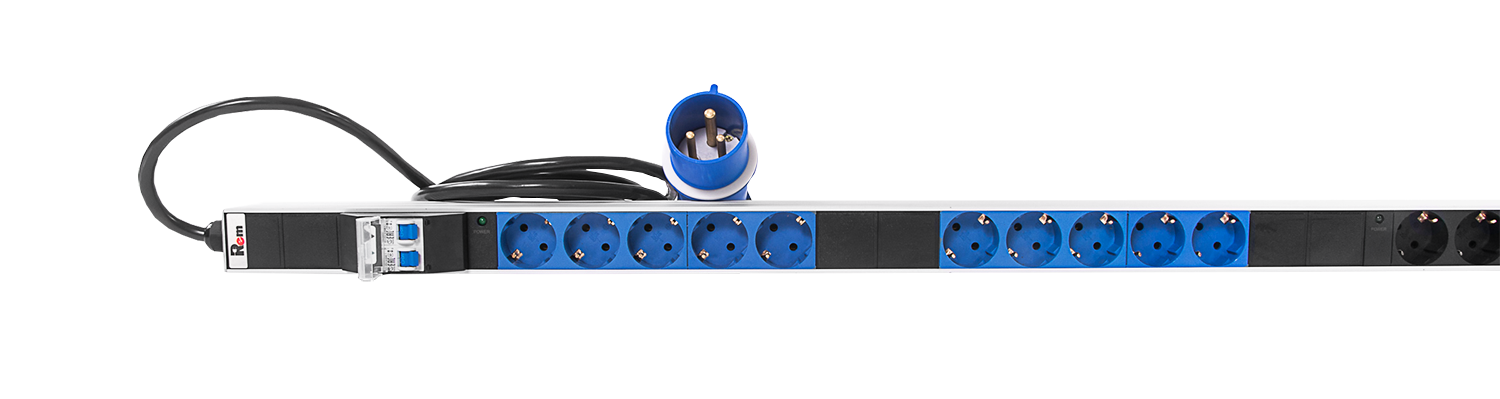 Верт блок розеток Rem-32, 1 фаза 32A, 2 авт, инд, 20 S, 1420 мм, вх IEC 309, шнур 3 м |