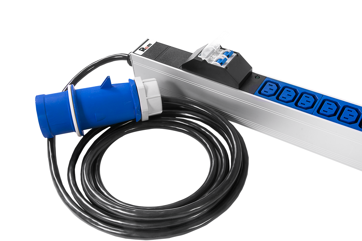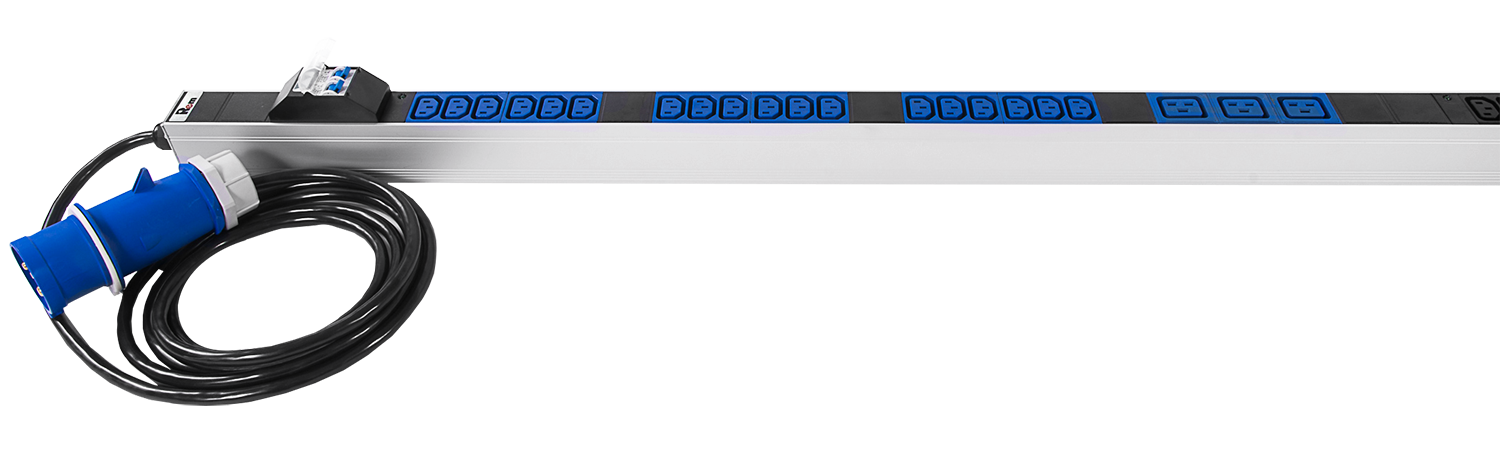 Верт блок розеток Rem-32, 1 фаза 32A, 2 авт, инд, 36 C13,6 C19, 1820 мм, вх IEC 309, шнур 3 м |