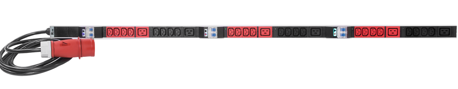 Верт блок розеток Rem-3x32, 3 фазы 32A, 6 авт, инд, 24 C13, 6 C19, 1420 мм, вх IEC 309, шнур 3 м |