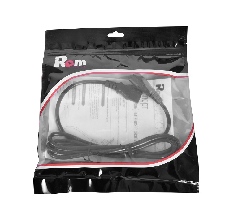 Шнур (кабель) выполнен из ПВХ черного цвета, имеет опрессованную розетку IEC 60320 C13 и вилку IEC 60320 C14. Кабель состоит из трех многожильных проводов сечением 1 мм, имеет заземление. Номинальный ток нагрузки: 10А. Номинально напряжение: 220-250 В. Длина кабеля 1.8 метра.