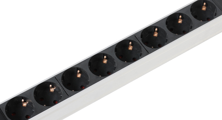 Блок силовых розеток имеет двадцать пять портов стандарта Schuko, выполнен в анодированном алюминиевом корпусе. Розетки расположены под углом 45%, для удобного подсоединения коленчатых штекеров. На лицевой части блока установлен индикатор питания. Кабель питания 3 метра. Блок предназначен для установки в шкафы 42-48U. Поставляется в индивидуальной упаковке с комплектом крепежа.