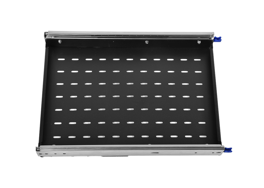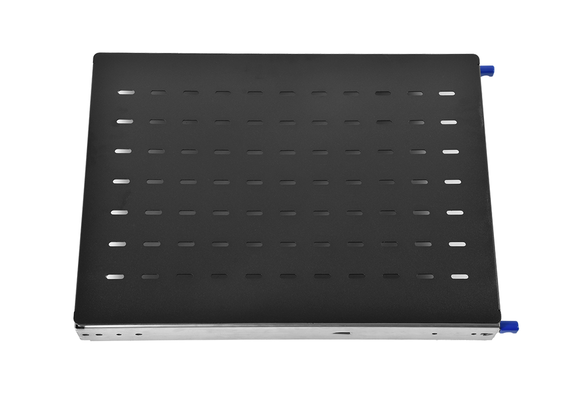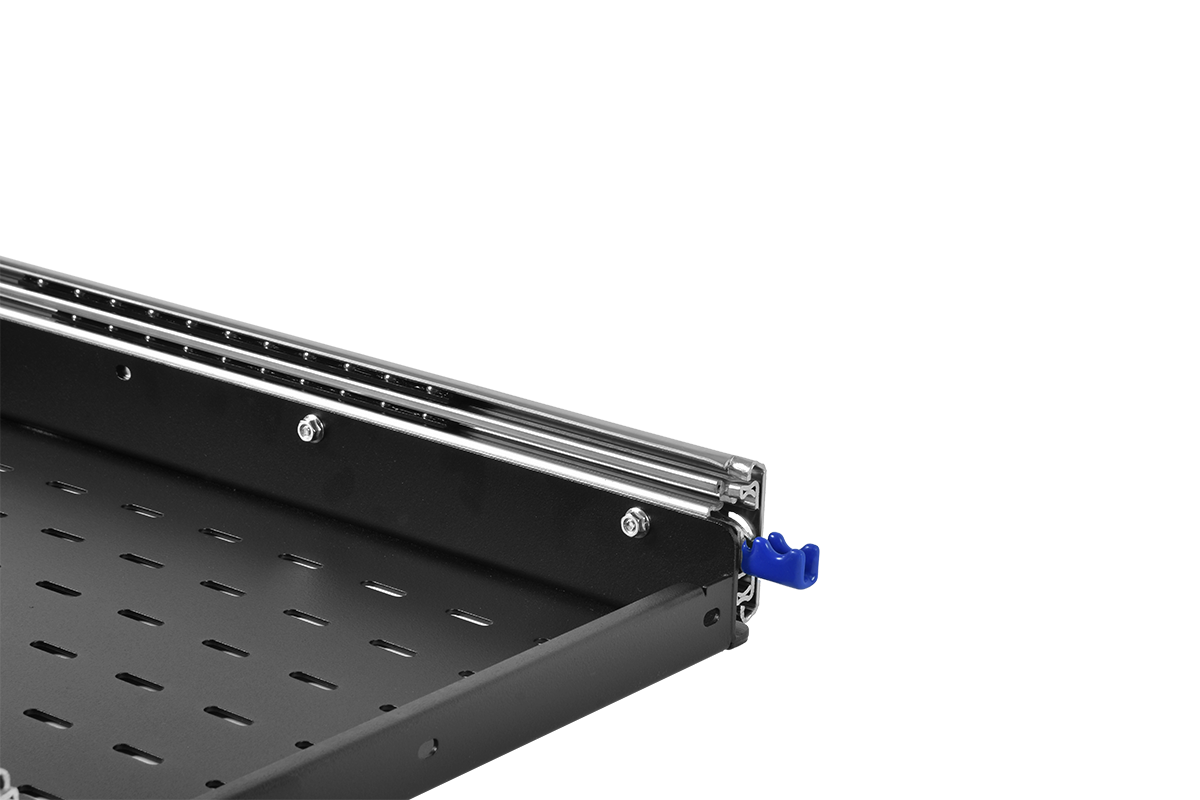 Полка усиленная с телескопическими направляющими грузоподъёмностью 150кг, глубина 620мм, цвет чёрный |