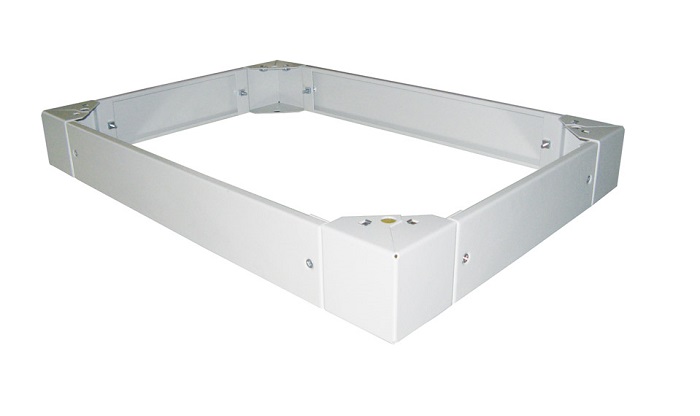 Цоколь разборный, выполнен из стали 2 мм. Имеет усиленную конструкцию, фиксируется к корпусу шкафа винтами. Состоит из соединенных заглушками силовых опор. Цоколь в стандартную комплектацию шкафов EME не входят, при заказе указываются отдельно. Цвет - RAL 7035 светло-серый.