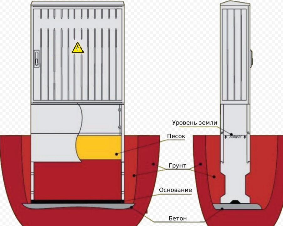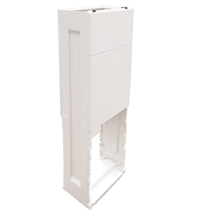 Передние стенки фундамента легко снимаются без применения инструментов, что позволяет легко заводить кабель в уже установленный шкаф.