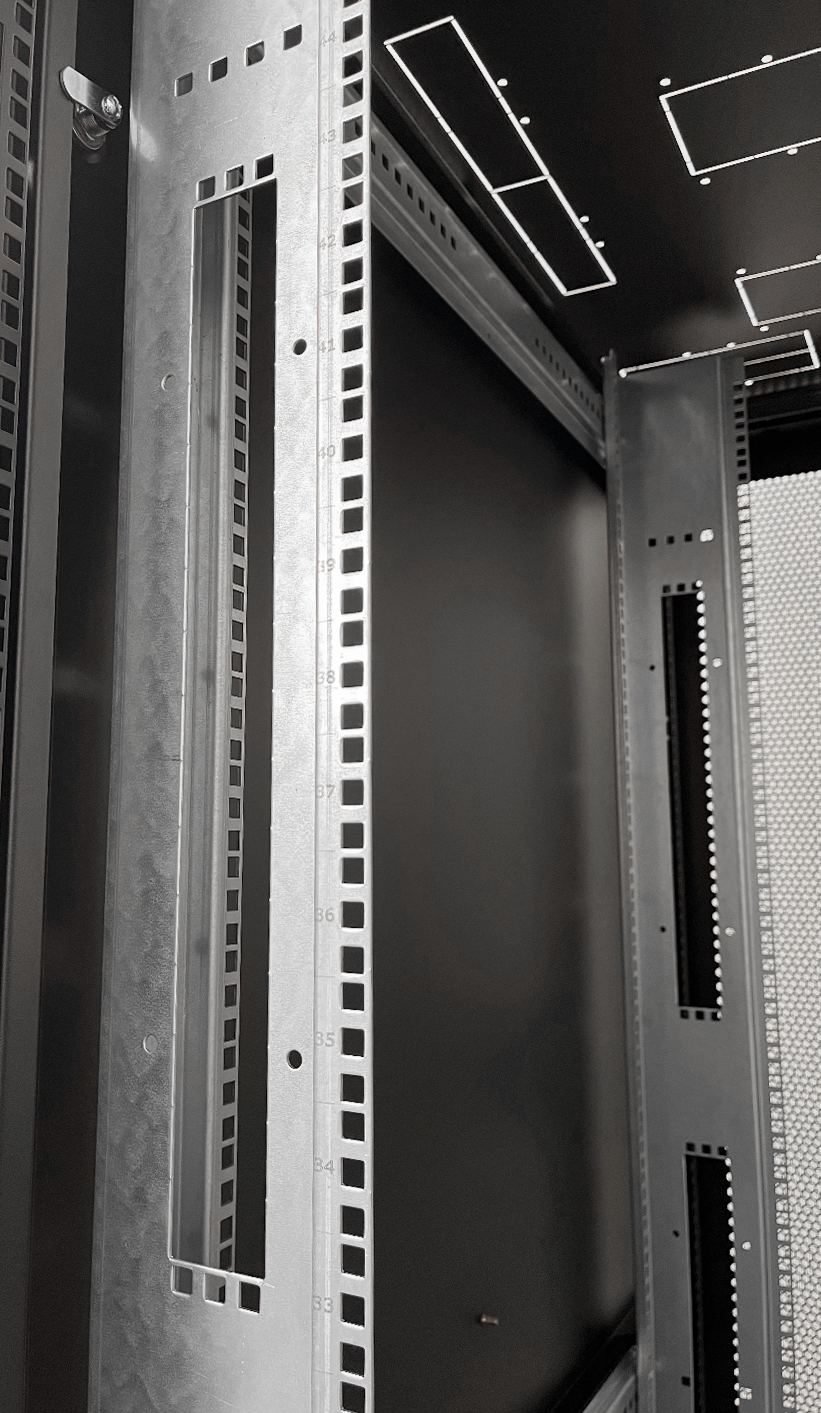 Шкаф серверный напольный 48U (800 × 1200) дверь перфорированная, задние двойные перфорированные |