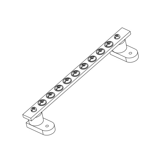 Панель заземления длинной 200 мм., из латунной шины сечением 5х15 мм с нагрузочной способностью 200А, 9 точек подключения с винтами М5.