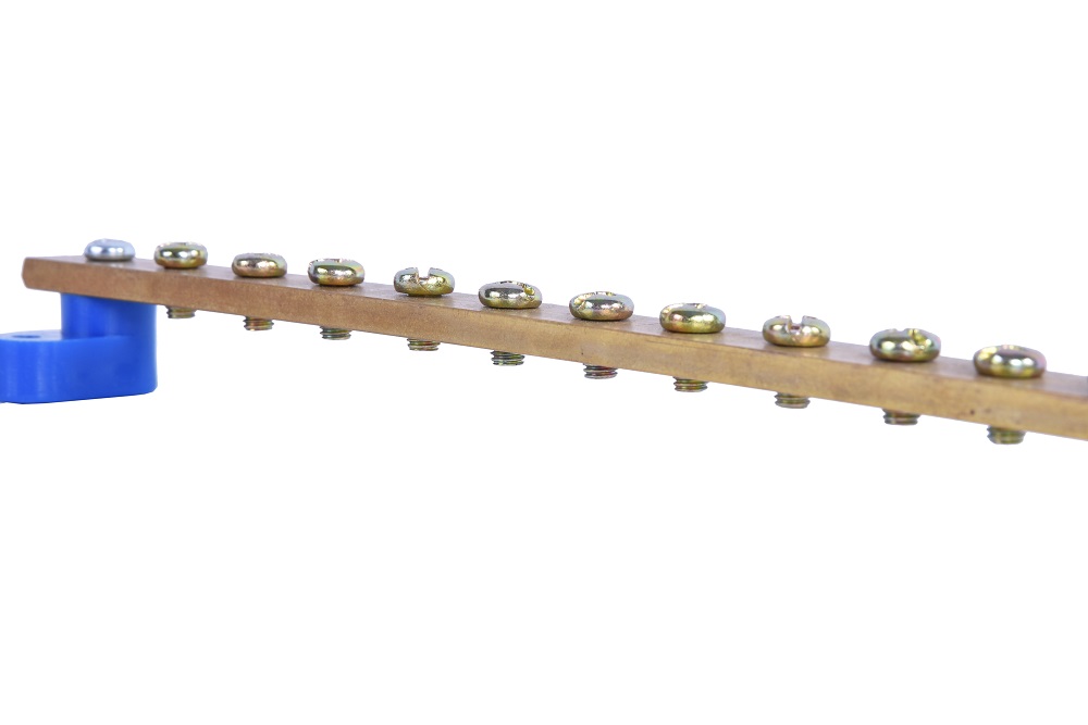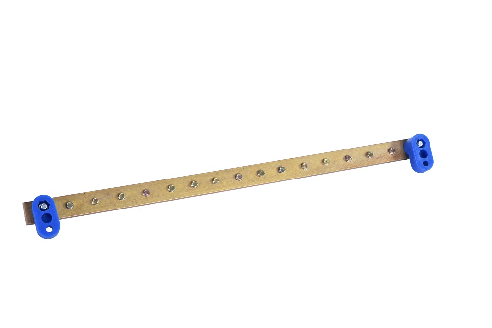 Панель заземления длинной 300 мм., из латунной шины сечением 5х15 мм с нагрузочной способностью 200А, 15 точек подключения с винтами М5.