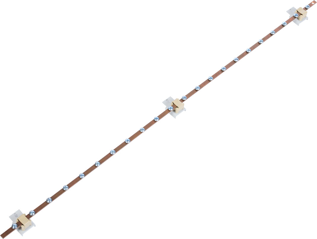Представляет собой латунную шину сечением 5х15мм соединенную с монтажными кронштейнами диэлектрическими держателями.